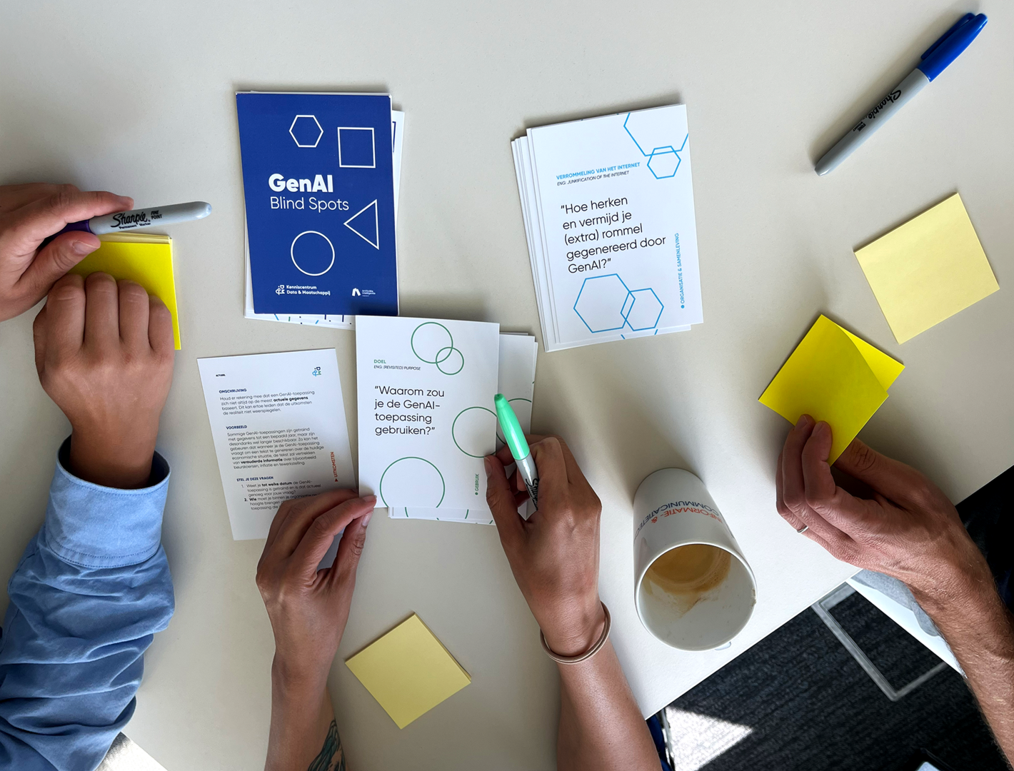Om organisaties hier bewust mee om te laten gaan, ontwikkelde het Kenniscentrum Data & Maatschappij de kaartenset GenAI Blind Spots. Deze kaarten helpen je om mogelijke ethische valkuilen te herkennen en gepaste acties op te stellen om de risico’s te beperken.